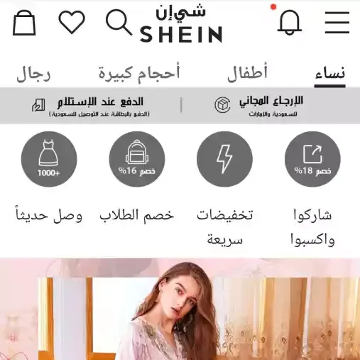 Shein تسمح لك بأن تستعرض وتشتري بخصومات كبيرة وأكثر من ١٠٠٠٠٠٠٠ عرض لكل الفئات بما فيها الأزياء النسائية والرجالية، الأحذية وشين الحقائب، مستلزمات الأطفال شي ان، المكياج، المستلزمات الرياضية من نيوشيك، الإلكترونيات وغيرها.